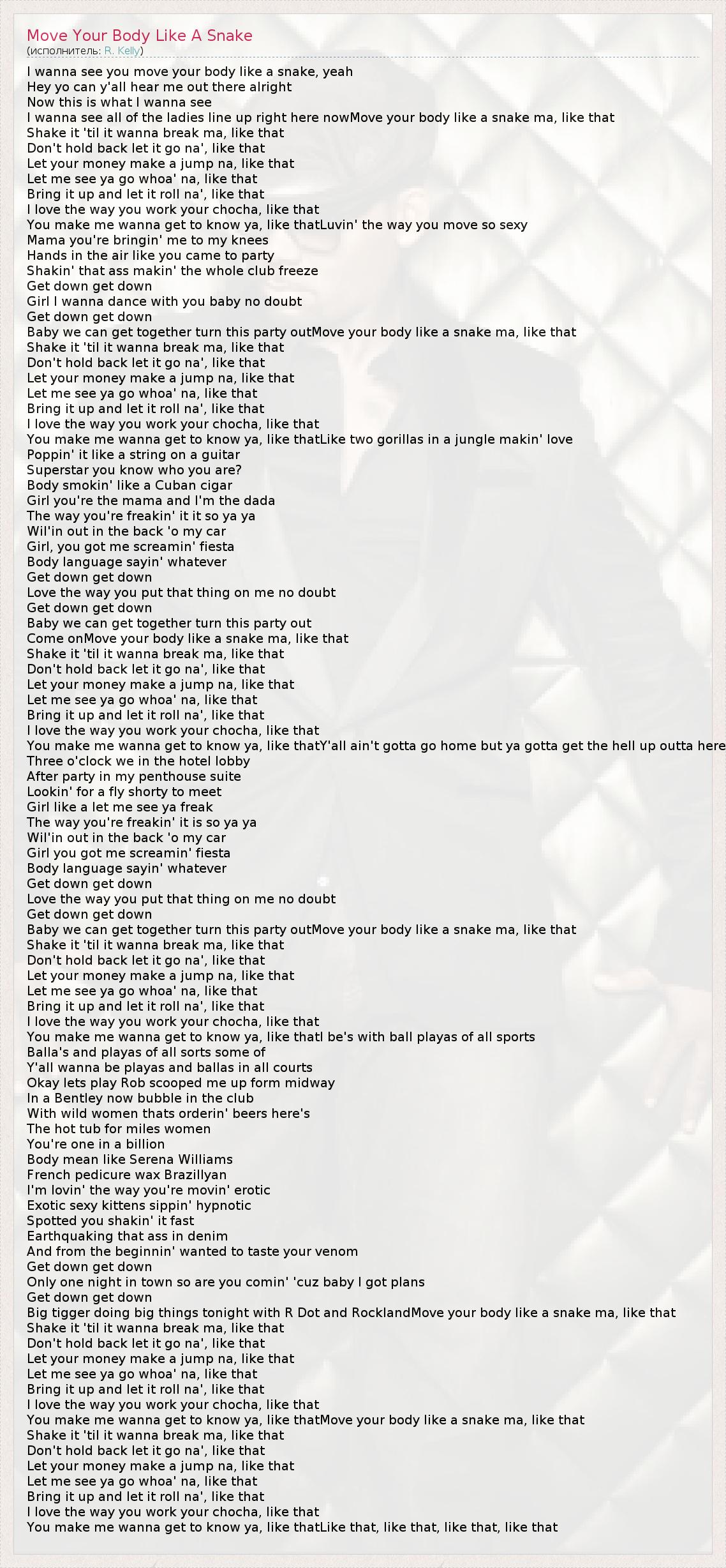 ГлавнаяИсполнителиR. KellyMove Your Body Like A Snake