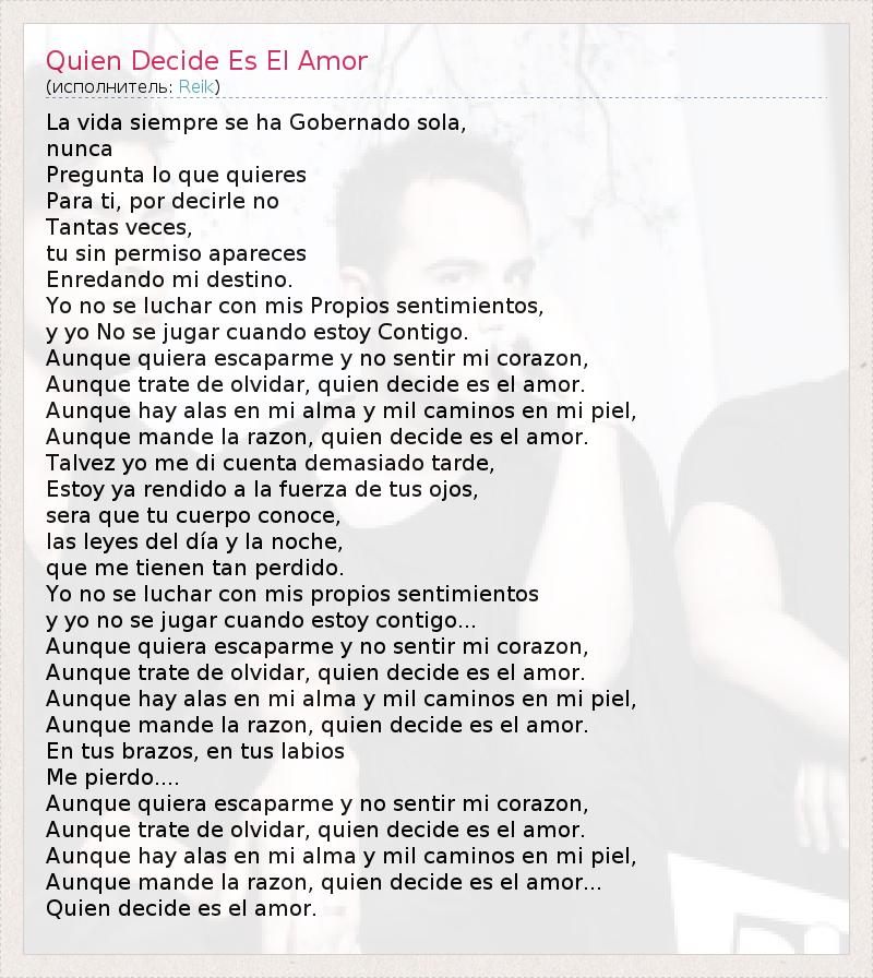 ГлавнаяИсполнителиReikQuien Decide Es El Amor