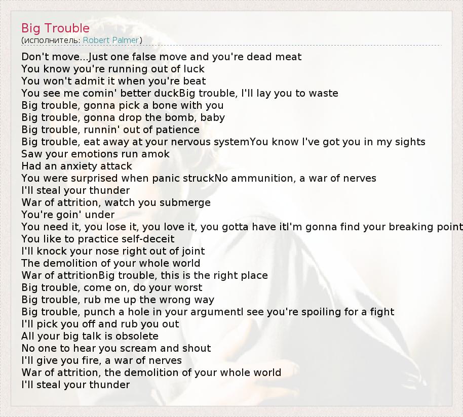 А как ты думаешь, о чем песня "Big Trouble" ?