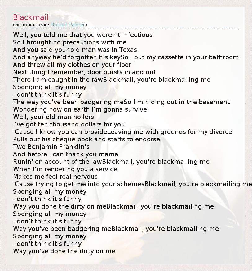 Way you done the dirty on meBlackmail, you're blackmailing me