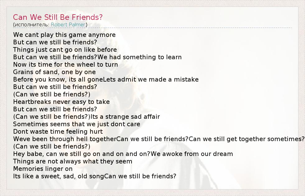 А как ты думаешь, о чем песня "Can We Still Be Friends?" ?