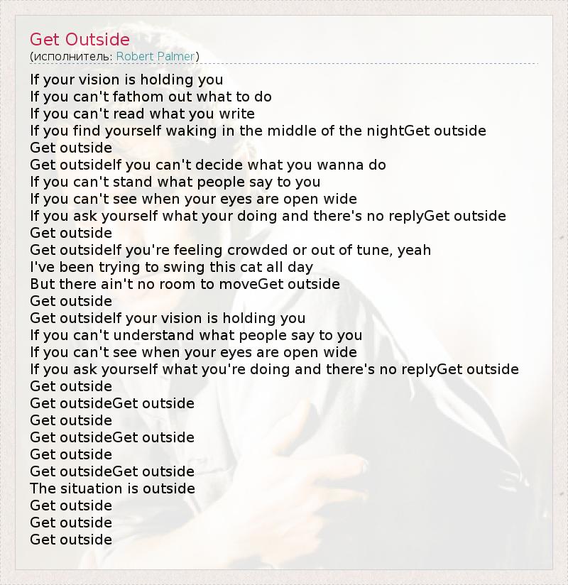Get outsideIf you're feeling crowded or out of tune, yeah