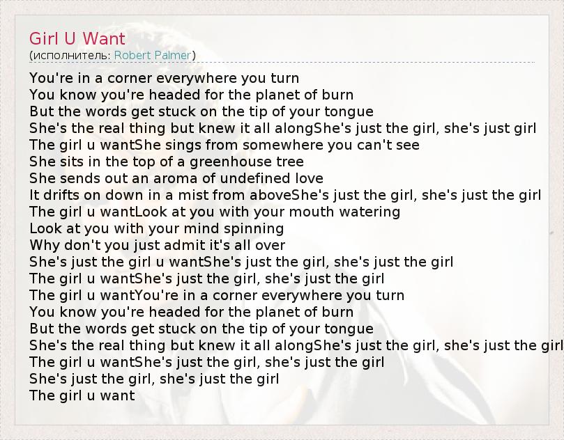 А как ты думаешь, о чем песня "Girl U Want" ?