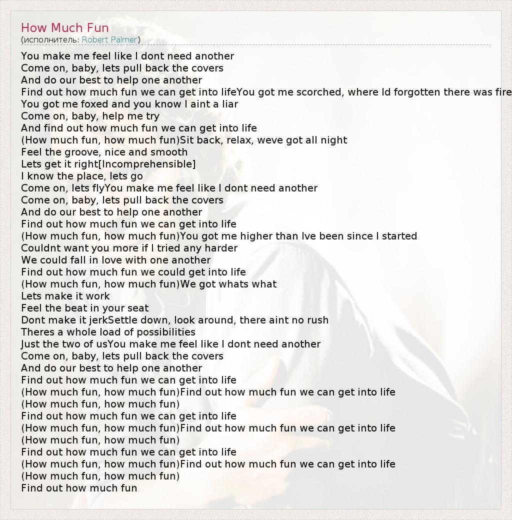 А как ты думаешь, о чем песня "How Much Fun" ?