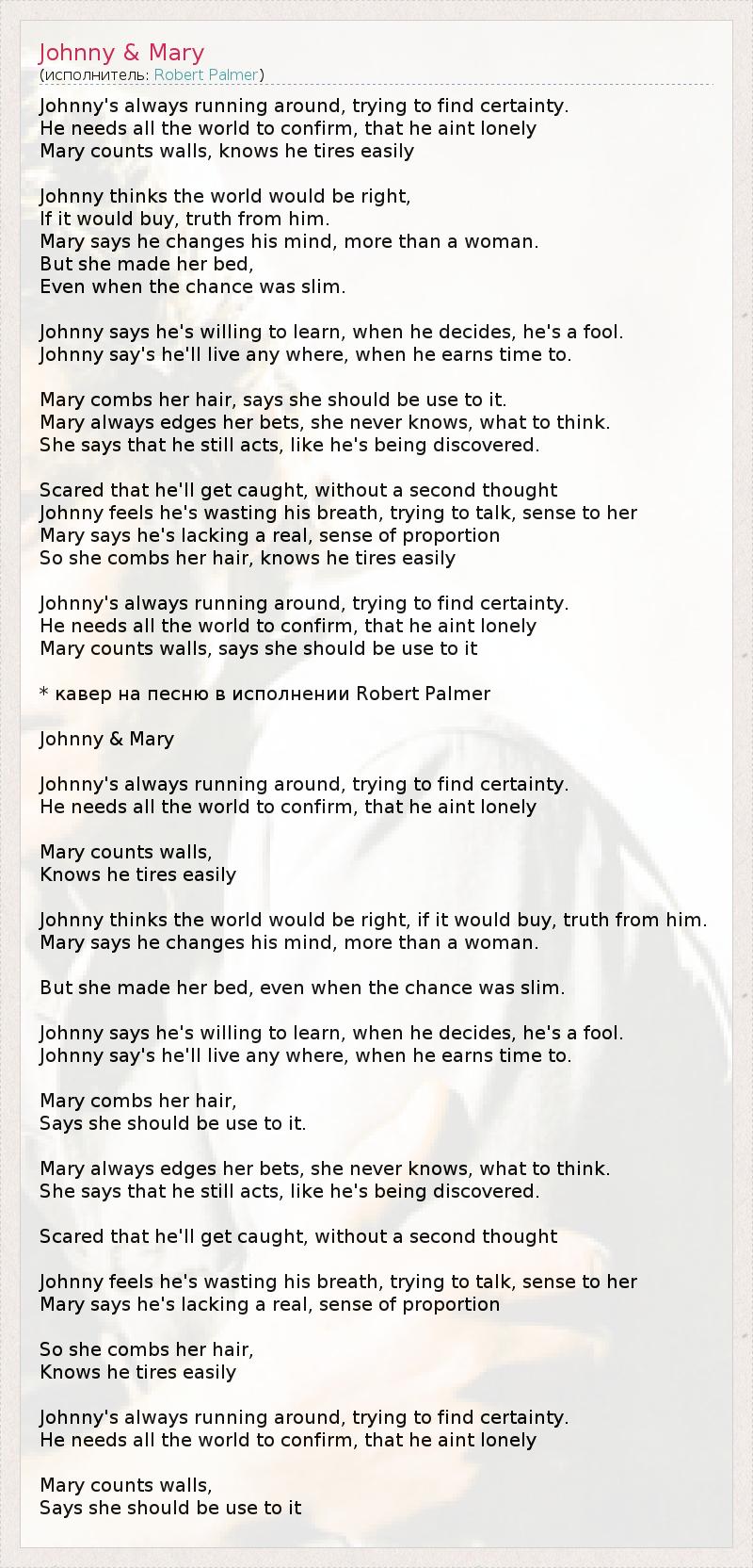 Джонни и Мэри (вольный перевод Даша-гуру из Казани)