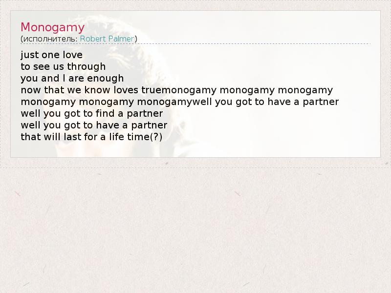 А как ты думаешь, о чем песня "Monogamy" ?