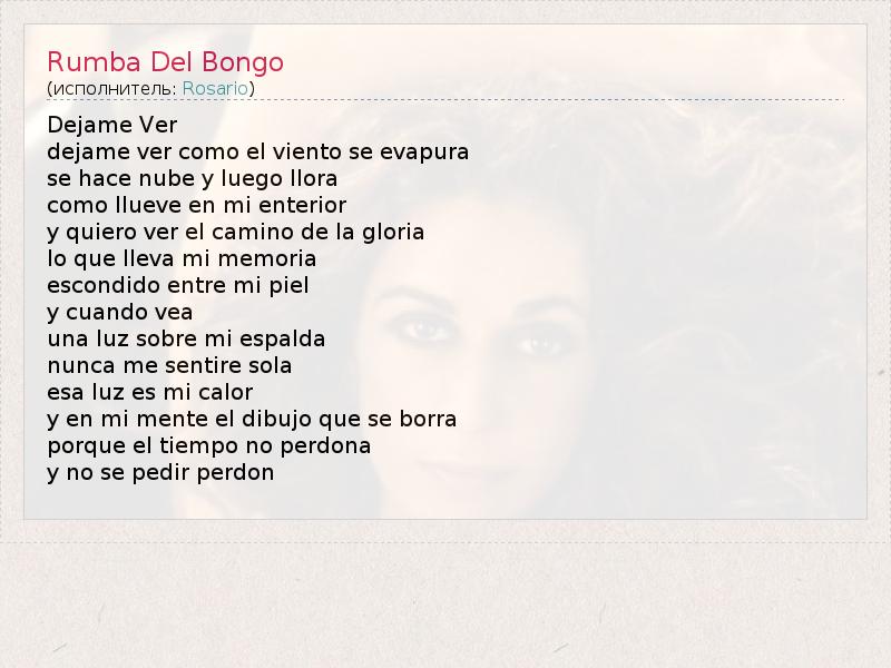 Это интересно:Росарио Гонсалез Флорес (Rosario Gonzalez Flores) более известная под сценическим именем Росарио (Rosario) - испанская певица и актриса цыганского происхождения, обладательница двух наград Latin Grammy Award 2002 и 2004 гг.Родилась 4 ноября 1963 года, Мадрид, Испания. Дочь прославленной танцовщицы фламенко, актрисы и певицы Лолы Флорес и Антонио Гонсалеза ('El Pescaílla').