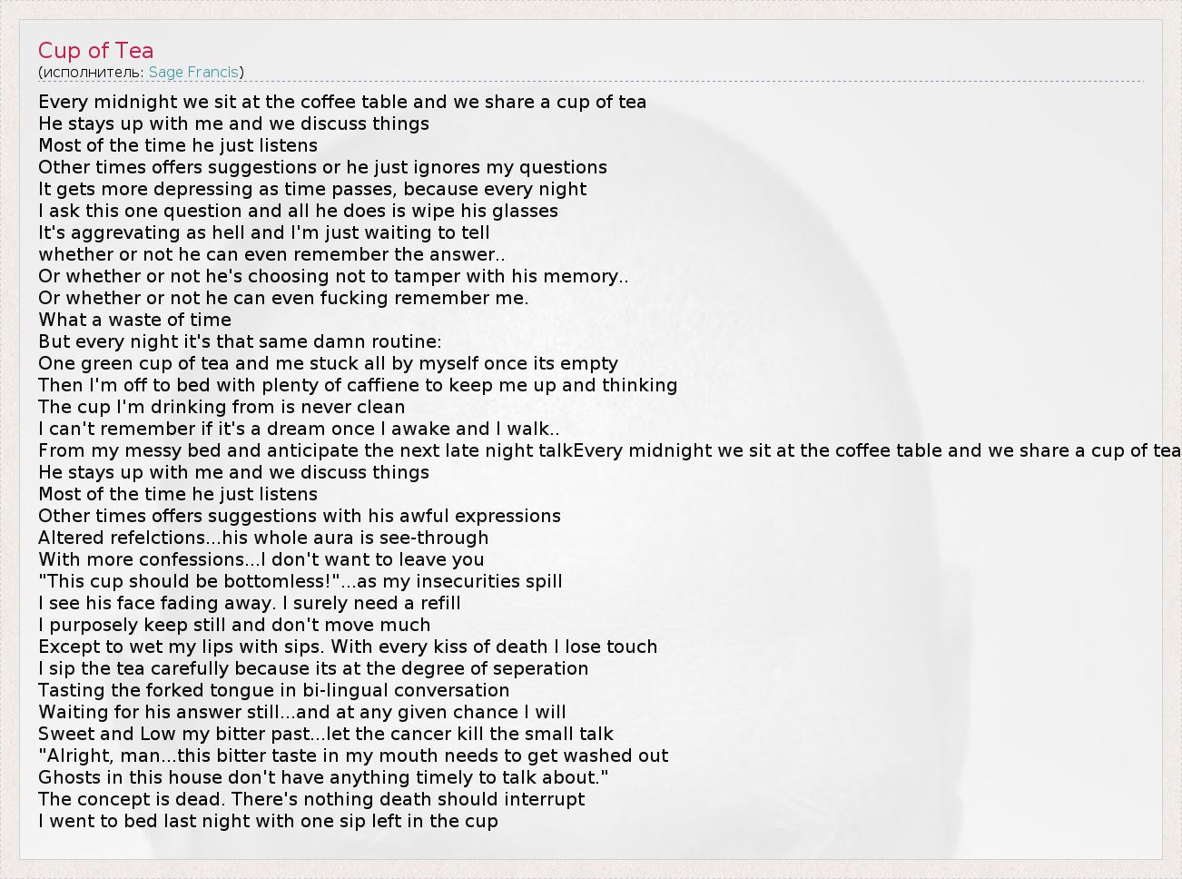 А как ты думаешь, о чем песня "Cup of Tea" ?