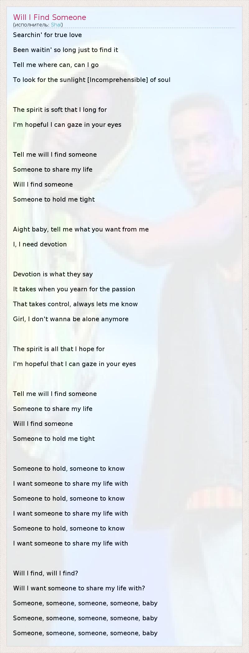 А как ты думаешь, о чем песня "Will I Find Someone" ?
