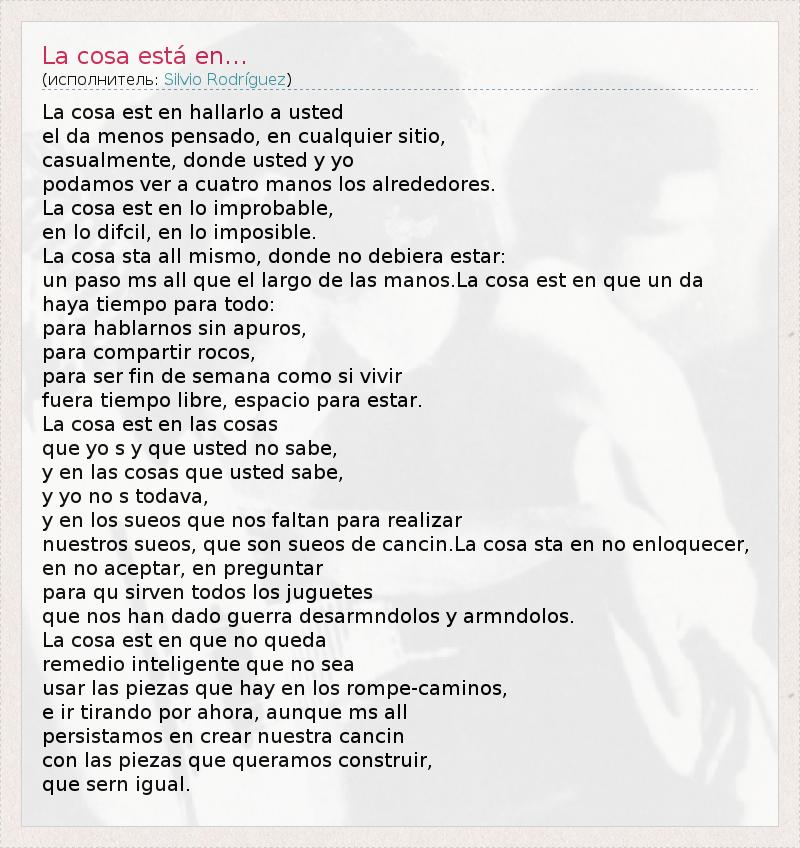 А как ты думаешь, о чем песня "La cosa está en..." ?