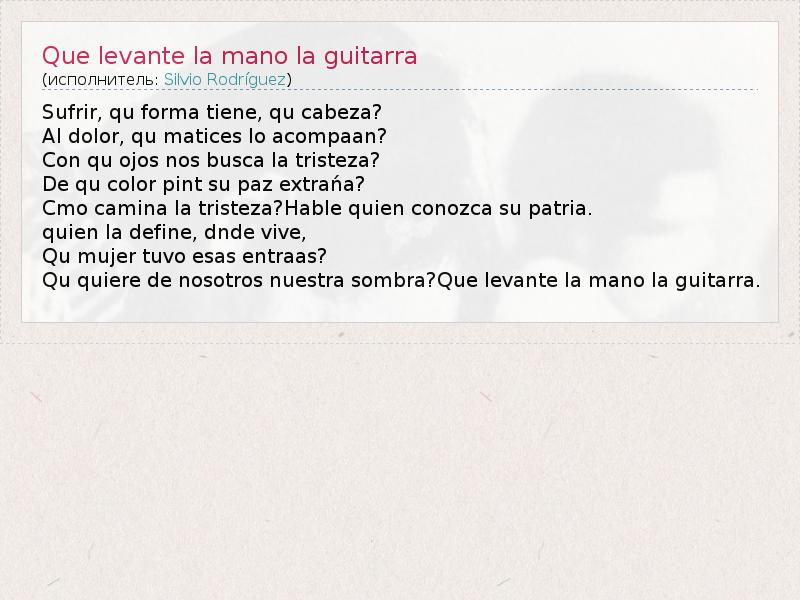 ГлавнаяИсполнителиSilvio RodríguezQue levante la mano la guitarra