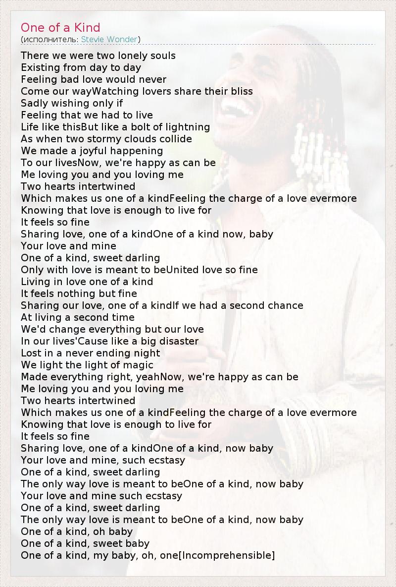 А как ты думаешь, о чем песня "One of a Kind" ?