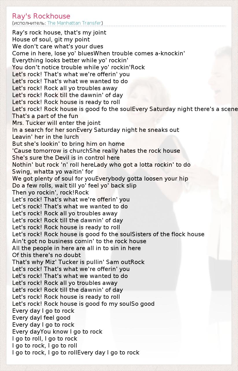 А как ты думаешь, о чем песня "Ray's Rockhouse" ?