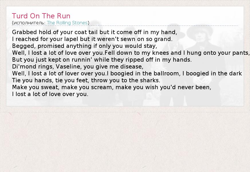 А как ты думаешь, о чем песня "Turd On The Run" ?