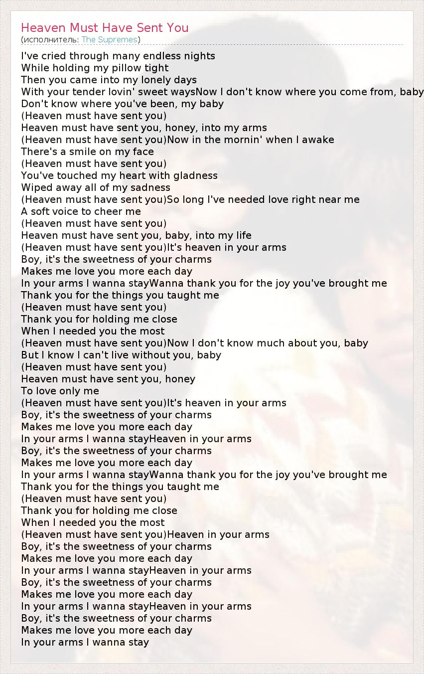 Heaven must have sent you, honey, into my arms
