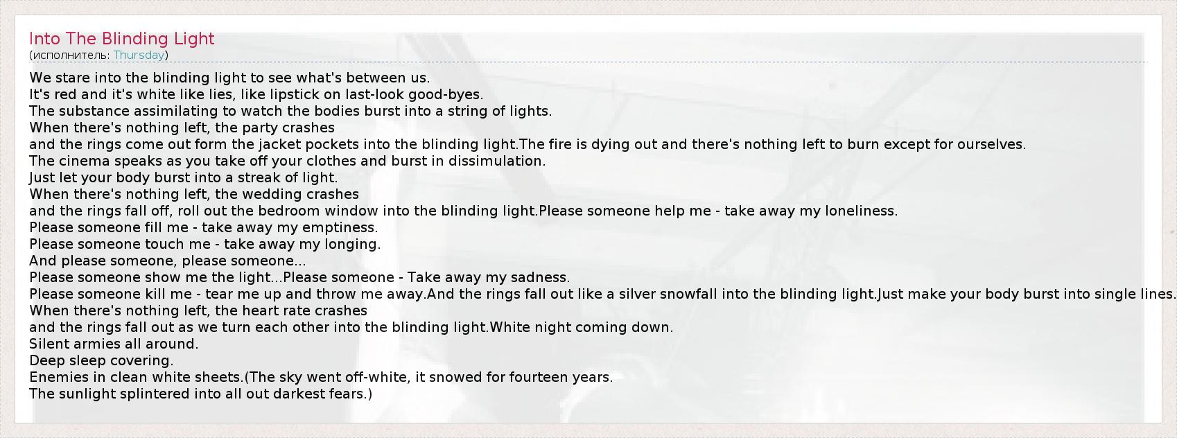 ГлавнаяИсполнителиThursdayInto The Blinding Light