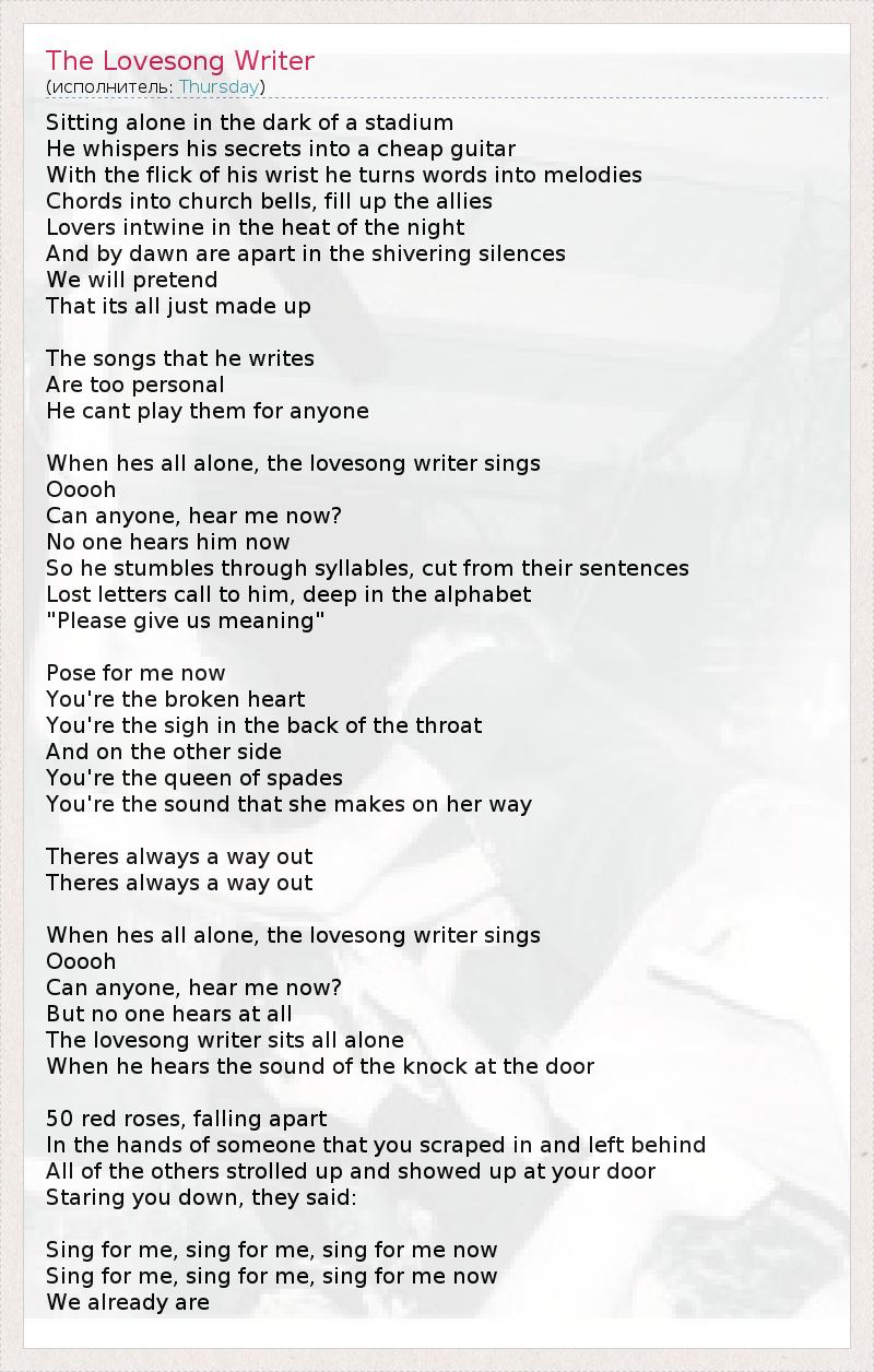 А как ты думаешь, о чем песня "The Lovesong Writer" ?