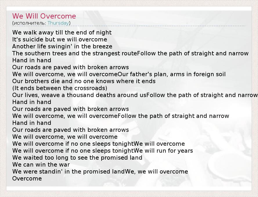 А как ты думаешь, о чем песня "We Will Overcome" ?