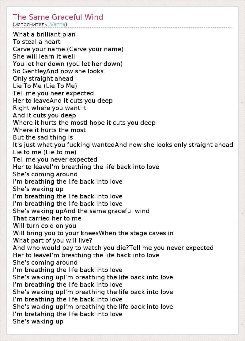 А как ты думаешь, о чем песня "The Same Graceful Wind" ?