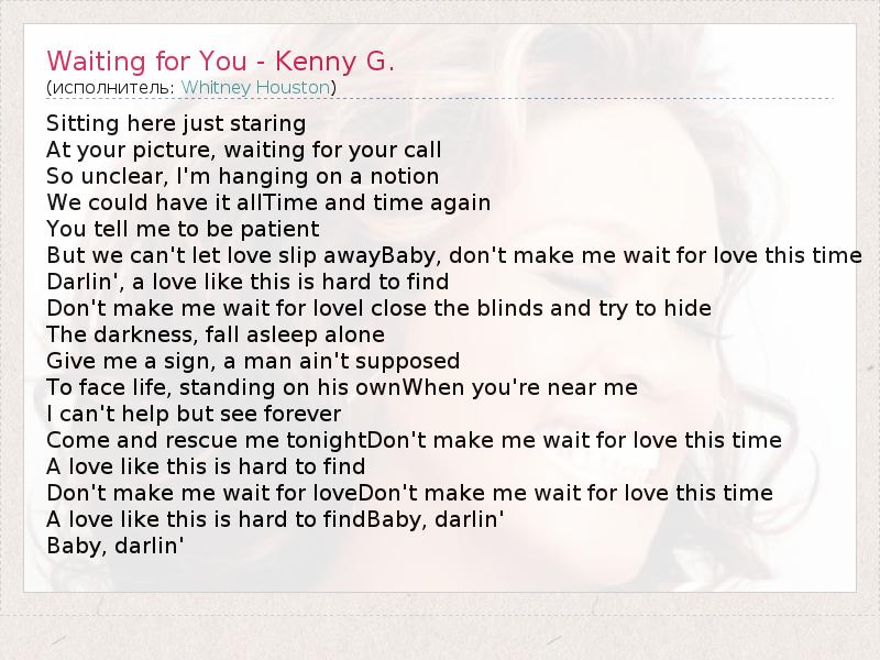 А как ты думаешь, о чем песня "Waiting for You - Kenny G." ?