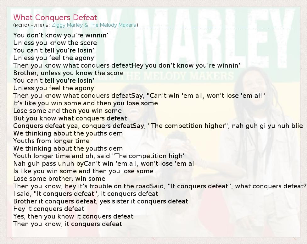 А как ты думаешь, о чем песня "What Conquers Defeat" ?