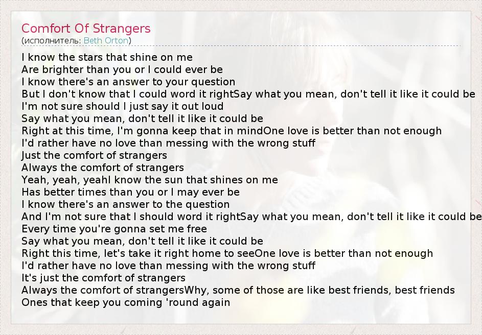 А как ты думаешь, о чем песня "Comfort Of Strangers" ?