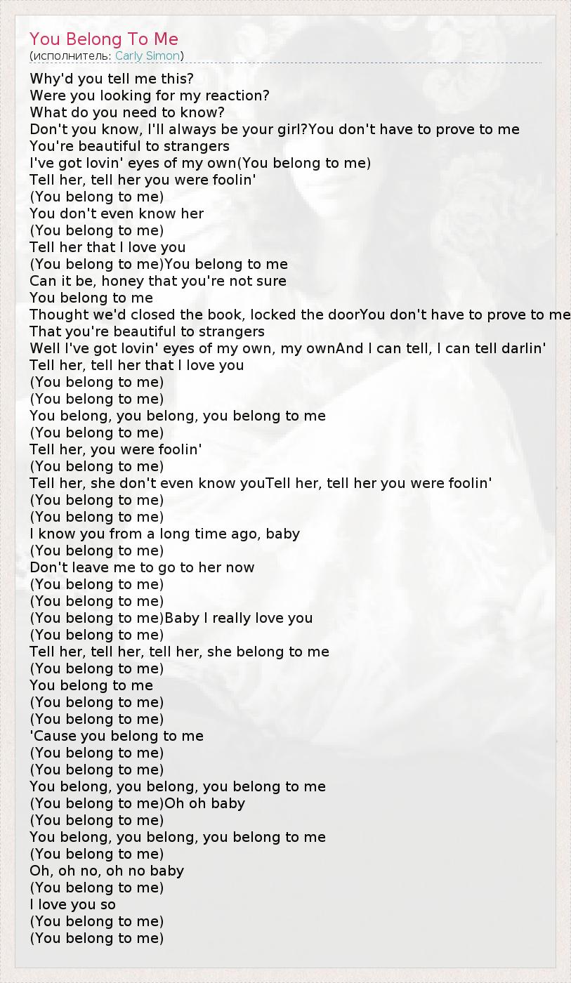А как ты думаешь, о чем песня "You Belong To Me" ?