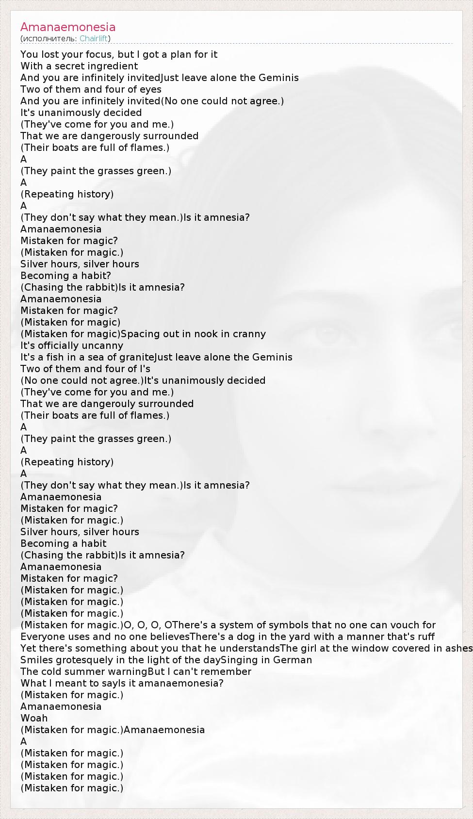 А как ты думаешь, о чем песня "Amanaemonesia" ?