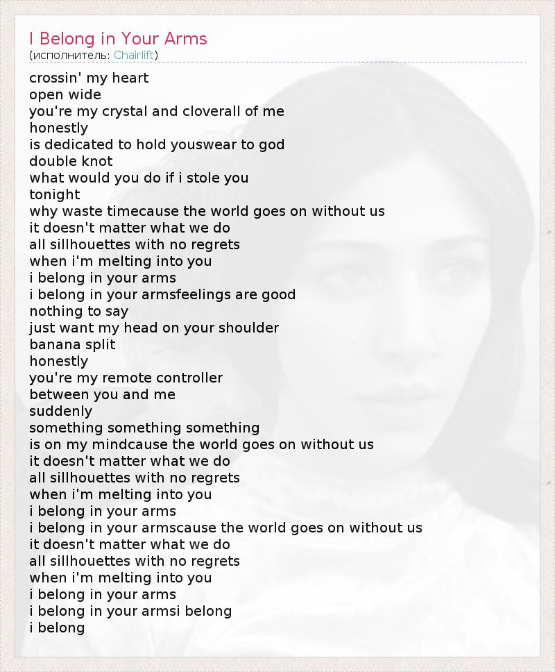А как ты думаешь, о чем песня "I Belong in Your Arms" ?