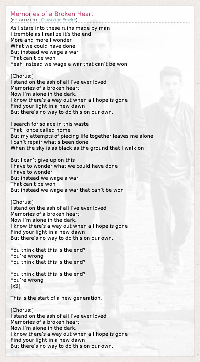 ГлавнаяИсполнителиCrown the EmpireMemories of a Broken Heart