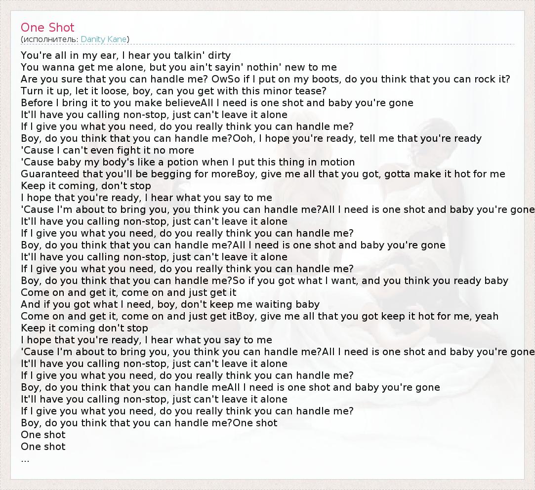 Boy, do you think that you can handle me?All I need is one shot and baby you're gone