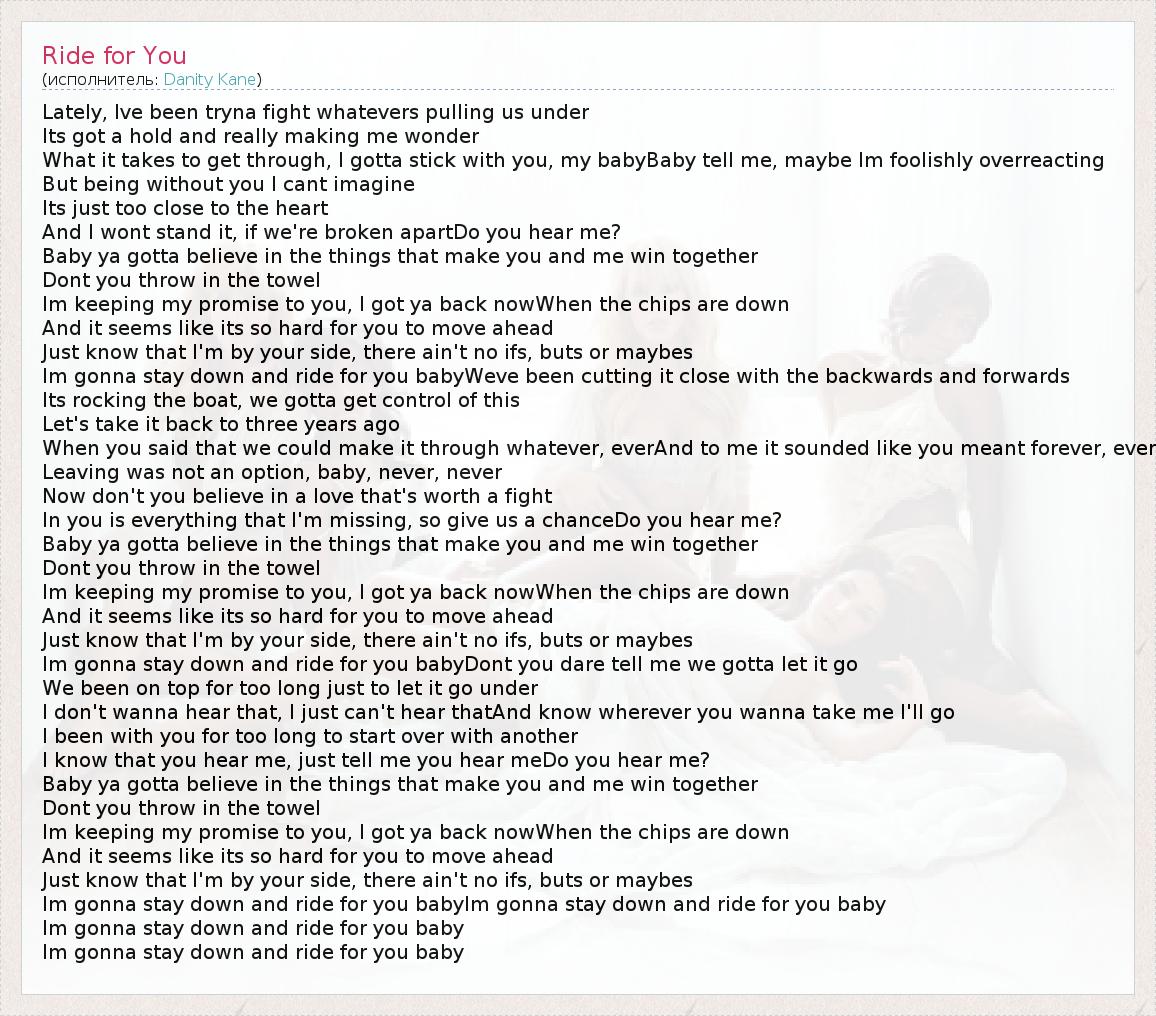 Im gonna stay down and ride for you babyIm gonna stay down and ride for you baby