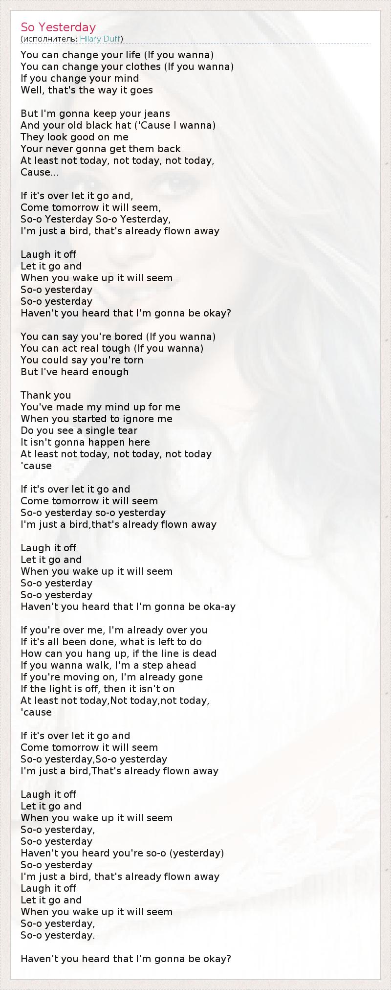 А как ты думаешь, о чем песня "So Yesterday" ?