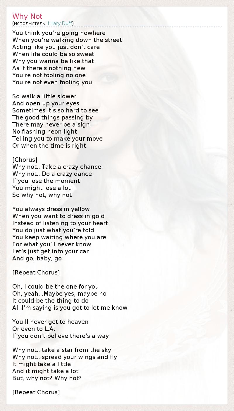 А как ты думаешь, о чем песня "Why Not" ?