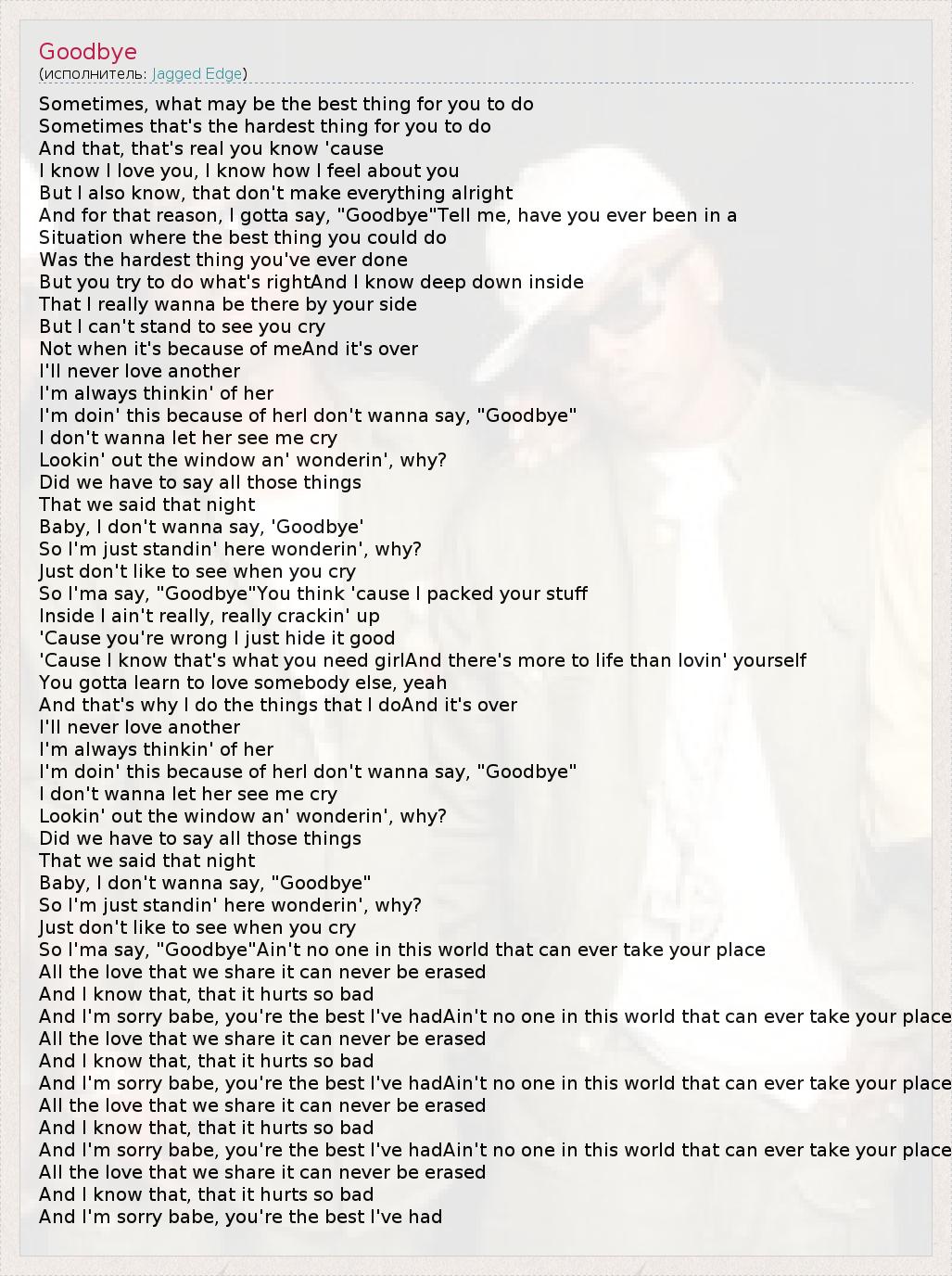 And for that reason, I gotta say, "Goodbye"Tell me, have you ever been in a