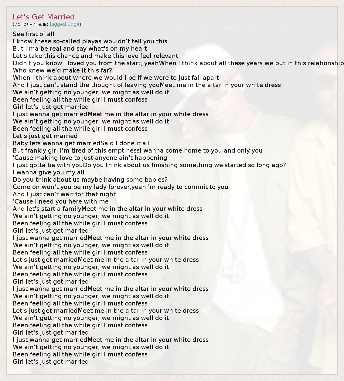 А как ты думаешь, о чем песня "Let's Get Married" ?