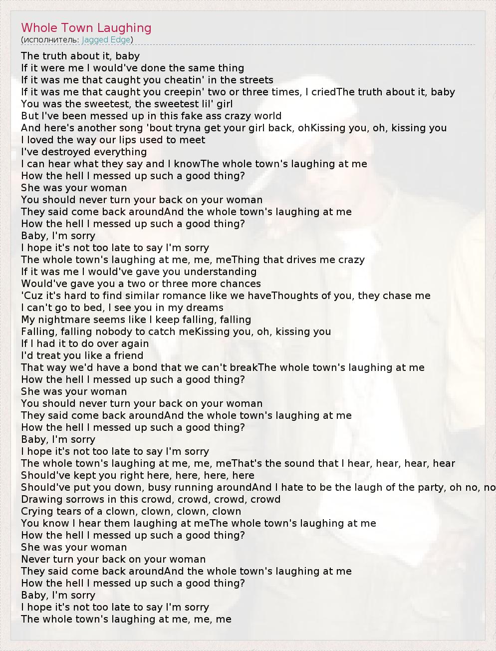 А как ты думаешь, о чем песня "Whole Town Laughing" ?