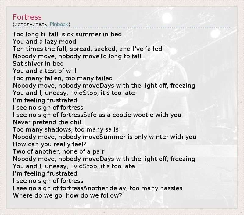 Это интересно:Pinback - indie rock группа из San Diego, CA, в данный момент подписаная на лейбле Touch and Go Records. Группа была создана в 1998 двумя певцами и мульти-инструменталистами: Армистэдом Бурвеллом Смитом Четвертым (или просто - Зак Смит) и Робом Кроу.За 10 лет существования группа записала четыре полноформатных альбома, последний из которых, The Autumn Of Seraphs, вышел... продолжение