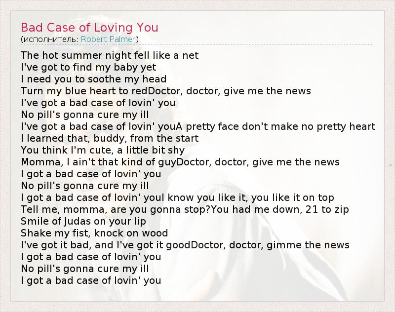 А как ты думаешь, о чем песня "Bad Case of Loving You" ?