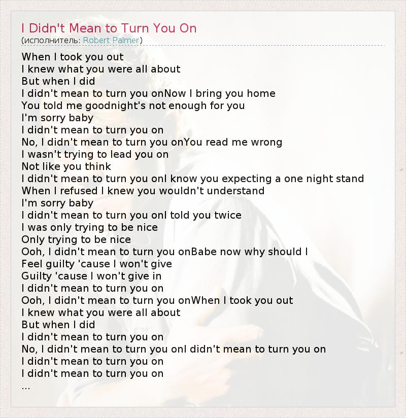 А как ты думаешь, о чем песня "I Didn't Mean to Turn You On" ?