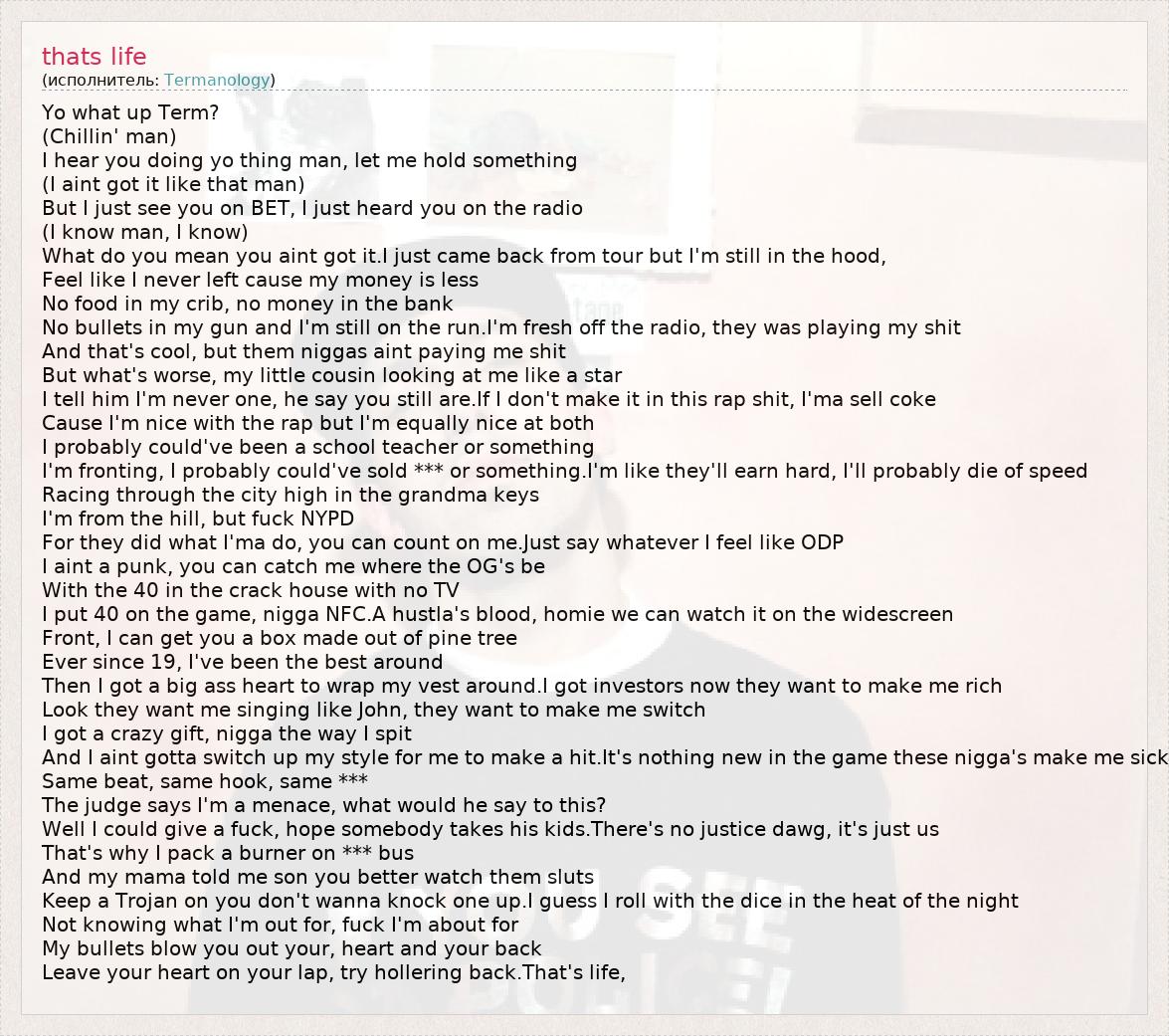 А как ты думаешь, о чем песня "thats life" ?