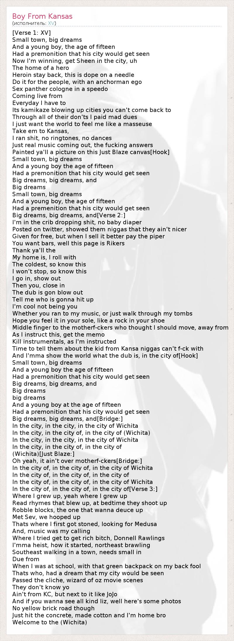 А как ты думаешь, о чем песня "Boy From Kansas" ?